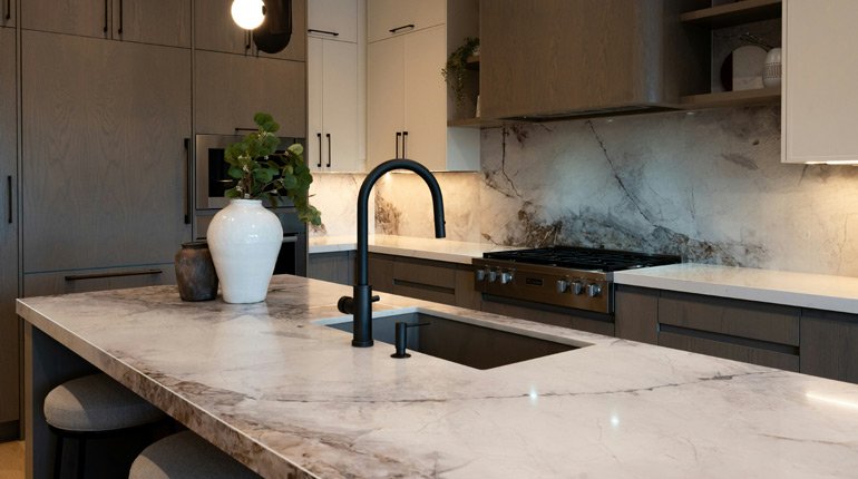 Another important question is how the countertop will relate to the rest of the room. If you already have a busy backsplash, strong flooring pattern, or richly veined cabinetry, a calmer countertop may be the smarter choice. In that case, quartz can be the perfect stabilizing element. If the room feels too plain and needs something memorable, quartzite or granite may give the space the movement and personality it is missing. A good showroom experience helps homeowners make those decisions with the full design in mind, instead of choosing a slab in isolation.