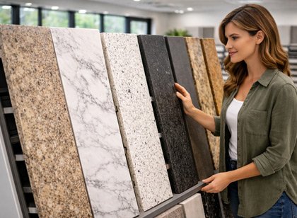 Start by thinking about function first. In kitchens, traffic flow, storage, cleanup, and countertop durability matter just as much as appearance. In bathrooms, moisture resistance, slip resistance, maintenance, and the visual scale of the room matter more than many homeowners expect. Once those basics are clear, comparing quartz countertops, granite countertops, quartzite countertops, tile, flooring, and cabinetry becomes much easier.